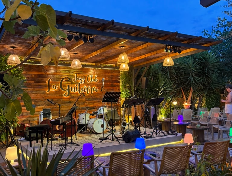Hemos cumplido ya más de 63 años y vamos a por la nueva temporada 2026 com mucha ilusión, ya estamos trabajamos para hacer una temporada inolvidable - La Guitarra es una antigua masía donde todos los fines de semana de Junio, Julio, Agosto y Septiembre encontrará el Jazz más cálido y auténtico con diversos grupos nacionales y internacionales. Podrán escuchar música, bailar, tomar un "cremat" y disfrutar en la terraza exterior del agradable aire fresco de las noches de verano. La música en vivo, directa y festiva, el ambiente simpático y a la vez íntimo, hacen que sea un local único e imprescindible.